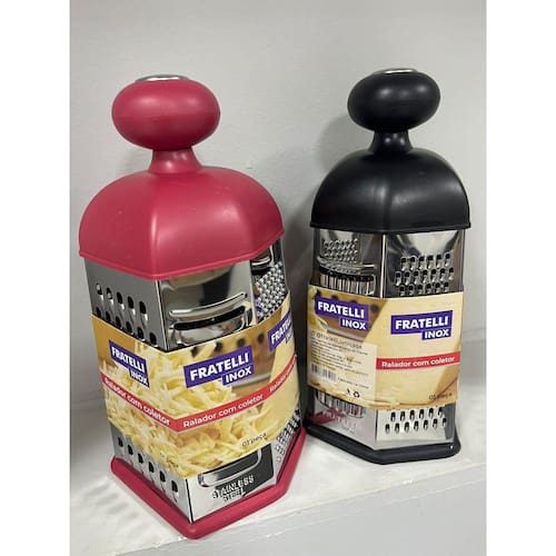 Ralador em aço inox com a alça em plástico possui um coletor, também em plástico, perfeito para armazenar suas verduras, queijos, frutas, etc Logo após serem ralados, garantindo praticidade e uma estética que trará mais beleza a sua cozinha!O ralador possui 6 faces, permitindo que você possa diversificar na hora de cozinhar!ESPECIFICAÇÕESComprimento: 14cmLargura: 12cmAltura: 27cm