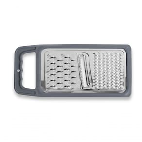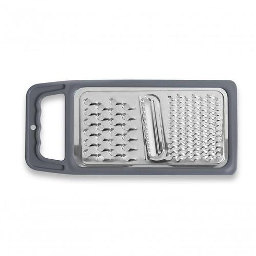 Ralador/cortador Inox Top Pratic - 25 X 11 Cm - Brinox 25 X 11 Cm Preto Brinox Leve muito mais praticidade e beleza para sua cozinha com o Ralador plano de inox da Brinox. Com 3 tipos de corte, o ralador permite ralar alimentos em diversos formatos e espessuras. Seu corpo em aço inox, garante durabilidade, e eficiência, além de ser mais fácil de limpar. Com alça em poliestireno na cor cinza, o ralador plano da Brinox possui 24,8X11,2X0,8 cm. Material - ABS + Aço Inox Linha - Top Pratic Tipo de Produto - Utensílios Composição - 01 Ralador/Cortador Inox Top Pratic - 25 X 11 Cm