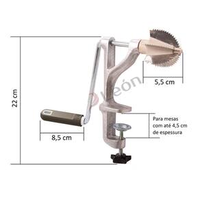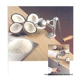 Raspe cocos sem precisar descascá-los de forma rápida e prática. Para fixá-lo é muito simples, você coloca no canto de sua mesa e regula a abertura da morsa através do parafuso fixador. Depois corte o coco no meio, posicione em frente as lâminas girando a manivela e pronto, seu coco será ralado.