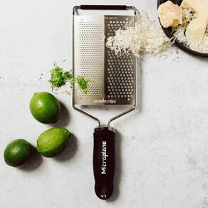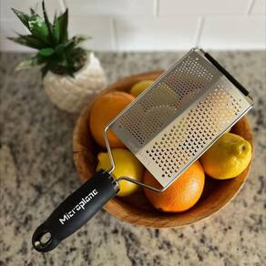Ralador Duplo Fino E Grosso Gourmet Series Microplane Preto Os raladores Microplane unem alta performance e design ergonômico. Com lâminas ultra afiadas de aço inox fabricadas nos EUA, oferecem cortes precisos para raspas delicadas ou mais grossas, ideais para frutas, queijos, legumes e especiarias.Seu cabo confortável e base antiderrapante garantem uso estável e seguro. Além disso, vêm com tampa protetora reutilizável e podem ser lavados na lava-louças, facilitando a limpeza. Perfeitos para chefs e amantes da culinária, trazem qualidade e praticidade para o dia a dia na cozinha.Especificações do produto: - Lâmina dupla: fina para raspas delicadas e grossa para ingredientes volumosos- Ideal para queijos, especiarias, vegetais e frutas- Cabo ergonômico para maior conforto durante o uso- Inclui tampa protetora para armazenamento seguro- Pode ir na lava-louçasFicha técnica: - Código: 4082740097- Marca: Microplane- Modelo: Gourmet Series- Conteúdo da Embalagem: 1 Ralador- Material: Aço Inox- Peso: 0,210kg- Dimensões do produto: 3cm x 11,5cm x 33,3cm (AxLxP)- Garantia: 3 Meses (Contra defeito de fabricação) Altura - 3cm Largura - 11,5cm Profundidade - 33,3cm Peso - 0,210kg Sobre a Marca - A americana Microplane é uma marca mundialmente reconhecida por seus raladores de alta qualidade e precisão. Seus produtos são conhecidos por sua durabilidade, design ergonômico e lâminas afiadas que permitem ralar facilmente uma variedade de alimentos, como queijo, frutas, legumes e chocolate. A marca Microplane oferece uma ampla gama de raladores, desde os clássicos de mão até os modelos mais especializados, tornando-se uma escolha popular entre chefs e amantes da culinária.