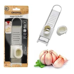 Ralador E Fatiador De Alho Gengibre Castanhas Em Aço Inox O ralador e fatiador de alho é produzido em aço inox de alta resistência e durabilidade, acompanha recipiente com tampa que protege os dedos ao ralar ou fatiar. Ideal para alimentos pequenos como gengibre, noz moscada, chocolate e amêndoas, além do tradicional alho e cebola.