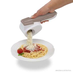 Ralador elétrico prático garante um longo tempo de funcionamento (mais de 100 pratos por carga). Leve e prático, é ativado com o simples toque de um botão.