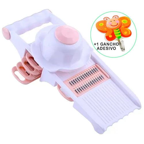 O Fatiador 5 em 1 surge como uma excelente opção para o uso diário na cozinha, visto que ele permite mais de 5 tipos de corte, além possibilitar a variação de espessura dos alimentos. Através dela é possível cortar os alimentos em tiras finas e grossas, rodelas lisas, ou rodelas regulares.;