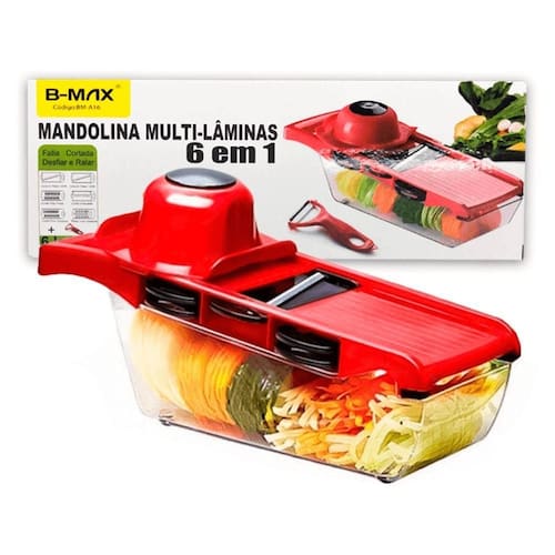 Você poderá preparar as receitas de sua preferência rapidamente e com menos esforço. Corta, Rala e Pica alimentos mais variados: Cebolas, pepinos, tomates, batatas, frutas em geral, cogumelos, queijos, etc.. Basta inserir os produtos no topo da caixa sobre as lâminas e apertar as caixas sucessivamente até criar a sua salada ou cortar legumes / frutas que precisar. Faça uma salada com uma excelente apresentação em segundos. Além disso, incluso descascador de alimentos.