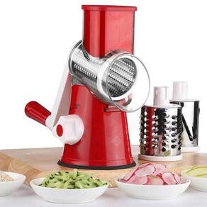 O fatiador / ralador cortador de legumes giratório manual é um utensílio multiuso que facilita o seu dia a dia no preparo das refeições. Ele conta com 3 tambores de lâminas em aço inox, é lavável, prático para limpar e higienizar, pois é totalmente desmontável.