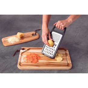 O ralador é produzido com lâmina em aço inox, garantindo sua durabilidade e mantendo suas características por mais tempo. Possui cabo de ABS com base emborrachada antideslizante, que promovem um manuseio confortável e seguro.