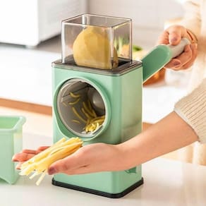 Ralador Manual Com Lâminas Afiadas Para Legumes Transforme sua cozinha com o Cortador Ralador Fatiador De Legumes E Queijo Manual 3 Em 1. Este utensílio multifuncional permite cortar, ralar e criar saladas belas e saborosas, além de preparar ingredientes para temperos e molhos com inovação, praticidade e rapidez.