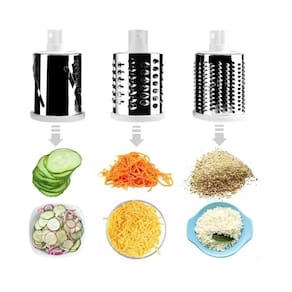 DESCRIÇÃO DO PRODUTO: Moedor de frutas e vegetais ideal para preparar rapidamente saladas e picar. Prepare batatas fritas, queijo ralado, alface, etc. de forma mais eficaz. Características do produto: 1. Equo com 3 lâminas de aço inoxidável de alta qualidade, lâmina robusta e afiada. Design de moda, artesanato. Tamanho pequeno, economiza espaço. Tambores facilmente intercambiáveis para diferentes opções de cozimento.3. A manivela simples gira o tambor e cria ingredientes perfeitamente ralados. Para operar e fácil de limpar. 4. Ideal para batatas fritas, haxixe de carne de milho e salada de repolho grelhada. Perfeito para ralar queijo, vegetais, batatas, batatas doces, nozes, cebolas e muito mais com este ralador rotativo manual. Ideal para batatas fritas e salada de repolho. 5. A base de sucção garante uma aderência sólida e estabilidade na superfície plana. Os tambores são equos com lâminas giratórias afiadas de aço inoxidável. COMO USÁ-LO? 1. Gire a trava da ventosa para travar a base do mandril de vácuo.2. Pressione o balde do recipiente na base do mandril de vácuo. 3. Coloque o tambor de moagem no cubo do recipiente. 4. Alinha a alavanca giratória com a trava cruzada do tambor do moinho. 5. Bloqueie e bloqueie o tambor de moagem. 6. Depois de carregar a fruta ou o vegetal, pressione o empurrador e agite a alavanca giratória ao mesmo tempo. Isso é tudo. 7. Corte, seda grossa, filamento e moa para atender à diversidade de seus vegetais cortados. INCLUI: 1 x Picador. 3 x lâminas de aço inoxidável. 1 x alça de movimento.