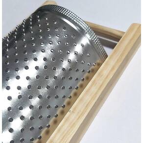Ralador mineiro gigante para milho/queijo aço madeira DescriçãoContém:01 ralador mineiro gigante para milho/queijo aço madeira Desde o tempo da vovó este ralador tem sido muito prático e útil. Com madeira resistente e de fácil manuseio, possui ralo em aço estanhado e bem afiado o que vai facilitar e muito sua vida para ralar queijo e milho. Especificações: Medidas exatas do ralador:- comprimento total: 38,5cm- altura total: 7cm- largura total: 18,2cm- largura ralo: 14cm- comprimento do ralo: 28,1cm - material: madeira e aço estanhado Itens inclusos:1 ralador queijo milho manual grande- 38x18,2cm