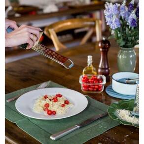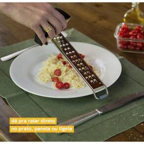 Design prático: apoiar para ralar direto na panela ou no prato.