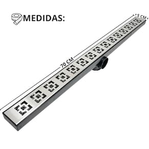 Ralo Linear modelo 5x70 Inox com lindo desenho inovador DUBAI que transmitem mais simetria ao ambiente ideal para banheiros, lavabos, varandas gourmet deixa seu ambiente elegante e combinam funcionalidade com beleza.