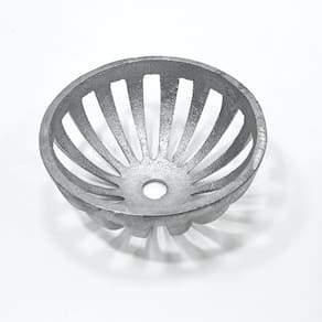 Caracteristicas: Ralo Hemisférico Redondo para Bocal de 75mm Material: Alumínio Fundido Cor Alumínio Natural sem Pintura Altura 5cm