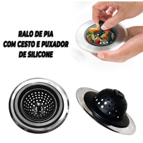 -flexível, resistente e fácil de limpar. -cesta de silicone que retém aos sólidos, evitando entupimento da pia. -basta virar o cestinho pelo avesso para esvaziar o conteúdo. -girando o eixo central de volta em qualquer direção o ralo da pia é vedado.