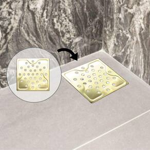 Ralo Dourado Quadrado em Aço Inox 9,5x9,5cm - By Fineza Ralo Dourado Quadrado em Aço Inox 9,5x9,5cm - By Fineza Material Aço Inox Dimensões do produto 9,5x9,5cm Revestimento Nitreto de Titânio Dourado Descrição O Ralo Dourado quadrado 9,5x9,5cm - By Fineza é produzido em aço inox de alto padrão e com revestimento dourado que não sai e não descasca. Um ralo dourado que agrega beleza, praticidade e funcionalidade aos ambientes. Esse ralo dourado pode ser em áreas internas e externas. Contém 1 ralo quadrado de 9,5x9,5cm padrão tigre Recomendações de uso Use apenas sabão ou detergente e o lado macio da esponja evite o contato com água sanitária . Outros tipos de produtos, como palha de aço, poderão riscar ou prejudicar o brilho. Enxágue bem a peça a fim de remover totalmente os resíduos dos produtos de limpeza, que, por serem abrasivos, podem prejudicar o inox. Sempre que possível, use água morna, pois renova o brilho do produto. Após a lavagem, enxugue imediatamente o mesmo, caso contrário, as substâncias químicas da água cloro poderão causar manchas. Na lavagem manual evite atrito entre o produto durante o processo de lavagem e no armazenamento, para mantê-los sem riscos. Não recomendado também, o uso de máquina lava louças.