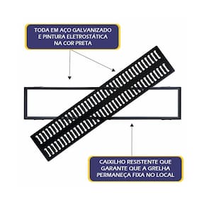 01 Ralo Grelha Com Caixilho em Aço Galvanizado Preto 20x100cm.