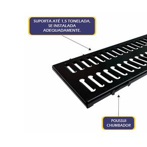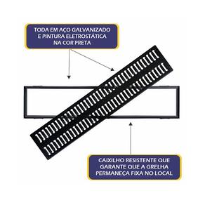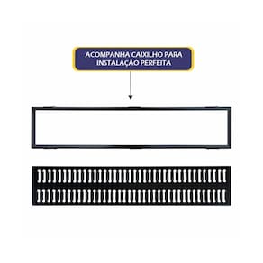Ralo Grelha Com Caixilho em Aço Galvanizado Preto 20x100cm O ralo grelha com caixilho em aço galvanizado é uma solução prática e resistente para garantir o escoamento eficiente da água em áreas molhadas como banheiros, áreas de serviço, varandas, garagens e ambientes externos. Por ser feito em aço galvanizado, ele oferece ótima durabilidade, não enferruja com facilidade e suporta muito bem o uso diário, além de manter a estrutura firme e segura por muito mais tempo. O caixilho ajuda na instalação e facilita a retirada da grelha para limpeza, deixando o dia a dia mais simples e evitando acúmulo de sujeira. É uma opção funcional, econômica e robusta para quem busca eficiência e acabamento bem feito em qualquer projeto.\n Características Técnicas: Indicação: Áreas Externas, Piscinas, Garagem e outros. Carga Máxima Suportado: 1500Kg. Acabamento: Pintura Eletrostática. Material: Aço Galvanizado. Peso: 2,920Kg. Cor: Preto. Medidas: Comprimento: 100cm. Largura: 20cm. Altura: 1cm. Itens Inclusos: 01 Ralo Grelha Com Caixilho em Aço Galvanizado Preto 20x100cm. Código: GEP006OM Marca: Não Informado