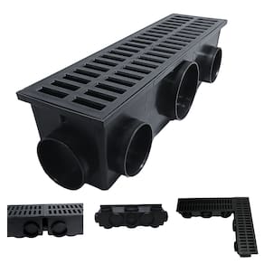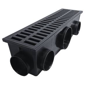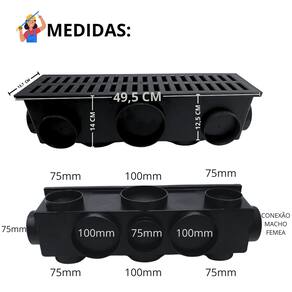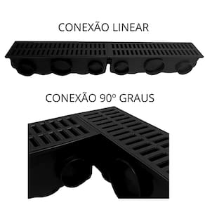 Ralo Linear com 11 Saídas Modelo 15x50 Plástico Preto com Coletor Modular de Plástico Borda de Piscina, Varandas, Áreas Gourmet