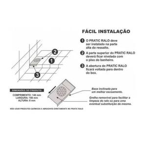 Ralo Inox Branco Brilho Para Box Banheiro - Pratic RaloPratic-RaloProduto inovador, Prático e HigiênicoO PRATIC RALO® foi desenvolvido para facilitar o escoamento da água de limpeza do chão do banheiro. Essa água passa perfeitamente pelo PRATIC RALO, indo para a parte rebaixada do box e sendo tragada pelo ralo do chuveiro, sem comprometimento com a higiene e nem com a rapidez do escoamento, Dispensa ligação com cano de esgoto, e de fácil substituição.O PRATIC RALO® é confeccionado em aço inoxidável garantindo assim a durabilidade e resistência do produto.Dimensões:Altura: 0,70 cmLargura: 10,20 cmComprimento: 14,30 cm** Preço do produto em PC **
