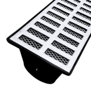 O conjunto é formado por: 1 - Grelha em Alumínio Sem Cantos Cortantes 1 - Coletora Plástica Saída Linear/Lateral (3 Opções de Saídas)