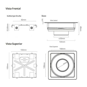 Ralo Linear Elleve Square 7343 10x10 Com Tampa Oculta Oculta 7343 Especificações Gerais do Produto: Dimensões AxLxP (mm)Base: 48x125x125; Subtampa: 23,80x100x100Material: Base em PVC e Subtampa em Aço Inox 304Garantia: 10 anos junto ao fabricanteReferência: 7343Linha: SquareFormato: QuadradoCompatibilidade: Acoplável em caixas sifonadas de 100mm e compatível com tubo de 50mmFecha Ralo (previne o retorno de insetos pela tubulação): SimModelo Oculto: A subtampa funciona como berço para acomodar uma tira de piso colada como acabamento final.Saída: Saída Central VerticalGrade Retentora (previne entupimentos na tubulação de esgoto): SimAbas para prevenir infiltrações: SimSugestão de Uso: Ideal para salas de banho, banheiros em geral, lavação ou áreas de serviço e reformas.Base com altura reduzida: Permite a instalação no contrapisoQueda Interna: Sim (ajuda a água fluir naturalmente para saída do ralo seco)Tipo: SecoLocal de Uso: Interno O que vem na caixa:1 Base do ralo1 Subtampa removível de Aço Inox 3041 Grade Retentora1 Fecha Ralo1 Ventosa para remoção da tampa