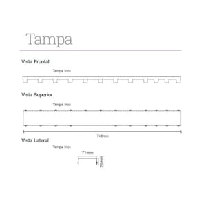 Ralo Linear Elleve Versatile 4258 75cm Saída Na Extremidade Com Tampa Inox Inox 4258 Especificações Gerais do Produto: - Dimensões AxLxP (mm): - Base: 33x773x100 - Tampa: 26x748x71- Cor: Inox Escovado- Material: Base em PVC e Tampa em Aço Inox 304- Garantia: 5 anos junto ao fabricante- Referência: 4258- Linha: Versatile- Formato: Linear- Compatibilidade: Acoplável em caixas sifonadas de 100mm e de 150mm e compatível com tubo de 50mm (necessário o uso da bolsa acoplável da marca Novii - não incluso)- Fecha Ralo (previne o retorno de insetos pela tubulação): Sim- Saída: Base com saída lateral de 50mm com eixo a 5,5cm da lateral da base- Grade Retentora (previne entupimentos na tubulação de esgoto): Sim- Abas para prevenir infiltrações: Sim- Sugestão de Uso: Ideal para banheiros em geral e espaços gourmet.- Base com altura reduzida: Permite a instalação no contrapiso- Queda Interna: Sim (ajuda a água fluir naturalmente para saída do ralo)- Observação: Produto com e sem sifonagem vertical: permite escolher entre instalar o ralo como sifonado ou como seco- Tipo: Seco/Sifonado- Local de Uso: Interno O que vem na caixa:1 Base do ralo em PVC1 Tampa removível de Aço Inox 3041 Sifão Grupo Linear1 Grade Retentora1 Fecha Ralo1 Ventosa para remoção da tampa Marca: LINEAR BRASIL