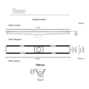Ralo Linear Elleve Versatile 8931 75cm Saída Central Com Tampa Oculta Oculta 8931 Especificações Gerais do Produto: - Dimensões AxLxP (mm): - Base: 21x774x100 - Subtampa: 16,4x748x71- Material: Base em PVC e Subtampa em Aço Inox 304- Garantia: 5 anos junto ao fabricante- Referência: 8931- Linha: Versatile- Formato: Linear- Compatibilidade: Acoplável em caixas sifonadas de 100mm e de 150mm e compatível com tubo de 50mm (necessário o uso da bolsa acoplável da marca Novii - não incluso)- Fecha Ralo (previne o retorno de insetos pela tubulação): Sim- Modelo Oculto: A subtampa funciona como berço para acomodar uma tira de piso colada como acabamento final.- Saída: Base com Saída Central Vertical de 50mm- Grade Retentora (previne entupimentos na tubulação de esgoto): Sim- Abas para prevenir infiltrações: Sim- Sugestão de Uso: Ideal para banheiros em geral e espaços gourmet.- Base com altura reduzida: Permite a instalação no contrapiso- Queda Interna: Sim (ajuda a água fluir naturalmente para saída do ralo)- Observação: Produto com e sem sifonagem vertical: permite escolher entre instalar o ralo como sifonado ou como seco- Tipo: Seco/Sifonado- Local de Uso: Interno O que vem na caixa:1 Base do ralo em PVC com saída central vertical1 Subtampa removível de Aço Inox 3041 Sifão Grupo Linear1 Grade Retentora1 Fecha Ralo1 Ventosa para remoção da tampa