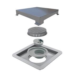 Peças que Compõem o Produto: - Ventosa para remoção da tampa; - Tampa removível de Aço Inox 304; - Grade Retentora; - Kit Fecha Ralo Square; - Base do ralo (Quadrado 15cm x 15cm, PVC).