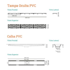 - Dimensões AxLxP (mm): - Calha: 29x773x100mm; 3 Subtampas: 26x248x76mm cada - Material: Calha em PVC e Subtampa em PVC - Garantia: 5 anos junto ao fabricante - Referência: 8893 - Formato: Linear - Compatibilidade: Acoplável em caixas sifonadas de 100mm e de 150mm e compatível com tubo de 50mm (necessário o uso da bolsa acoplável da marca Novii - não incluso) - Modelo Oculto: A subtampa funciona como berço para acomodar uma tira de piso colada como acabamento final. - Saída: Saída Central vertical de 50mm - Filtro (previne entupimentos na tubulação de esgoto): Sim - Abas para prevenir infiltrações: Sim - Sugestão de Uso: Ideal para salas de banho e banheiros em geral. - Base com altura reduzida: Permite a instalação apenas no contrapiso, sem precisar cortar a laje - Queda Interna: Sim (ajuda a água fluir naturalmente para saída do ralo) - Observação: Indicado para áreas onde não possui caixa sifonada, pois realiza o sistema de sifonagem. - Tipo: Sifonado - Local de Uso: Interno O que vem na caixa: 1 Calha do ralo de PVC 3 Subtampas removíveis em PVC (26x248x76mm cada) (AxLxP) 1 Sifão Grupo Linear 1 Filtro