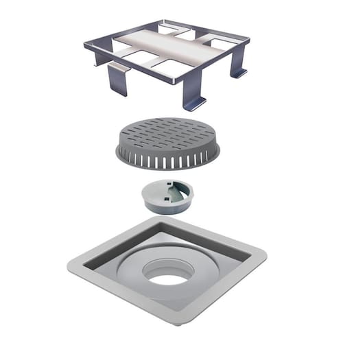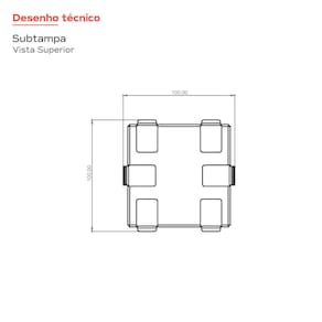 Peças que Compõem o Produto - Ventosa para remoção da tampa; - Subtampa removível de Aço Inox 304; - Grade Retentora; - Kit Fecha Ralo Square; - Base do ralo (Quadrado 10cm x 10cm, PVC).