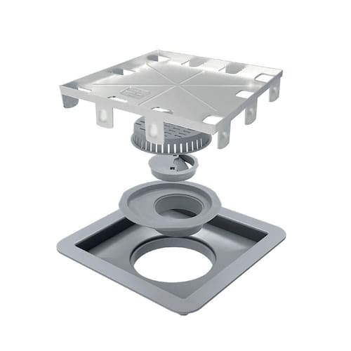 Base do ralo (Quadrado 15cm x 15cm, PVC).