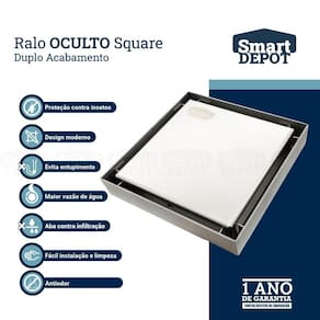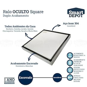 Ralo Oculto Slim Inox 20x20cm Sem Borda Smart Depot