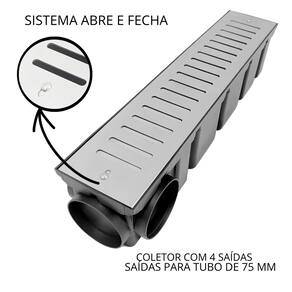 Ralo Linear com 4 Saídas Modelo 10x50 em Inox 304 SISTEMA ABRE E FECHA com Coletor Modular de Plástico Borda de Piscina, Varandas, Áreas Gourmet