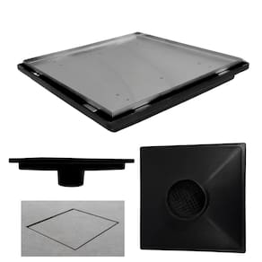 1 - Base para Cola Piso em Inox 304 ( pIso deve ser colado com PU) 1 - Coletora Plástica Saída Baixa 100mm (4 polegadas) 1 - Tela Anti Insetos Plástico