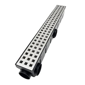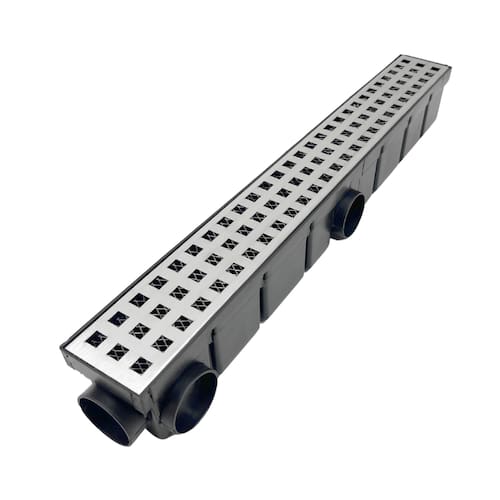 Grelha Pluvial Ralo Linear 6x50 Inox desenho Quadriculado e Caixa Coletora Saídas Tubo 40mm com Tela