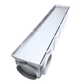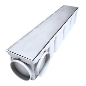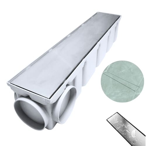 Ralo Linear Invisível 2 em 1 Modelo 10x50 em Inox com Coletor Modular de Plástico Multi Saídas Borda de Piscina, Varandas, Áreas Gourmet