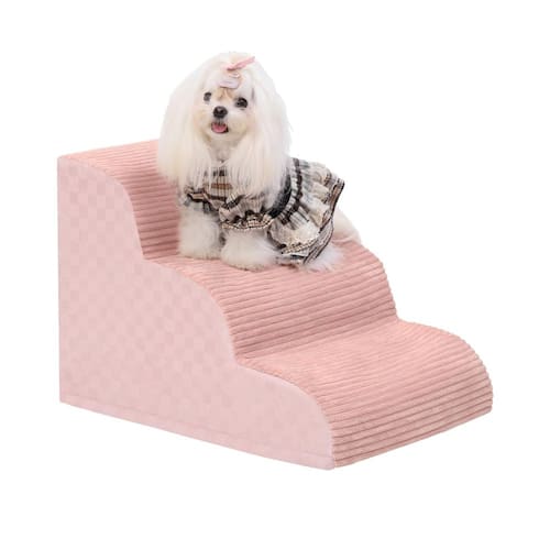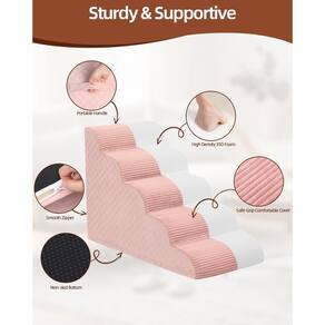 Escada para cães - Estável e resistente: ajude seu animal de estimação a alcançar áreas difíceis de alcançar com nossas escadas convenientes. A rampa para cães é projetada para cães pequenos e é feita de espuma 35D de alta qualidade, adequada para animais de estimação de até 22,7 kg, oferecendo equilíbrio perfeito de suporte e suavidade. Além disso, a alça embutida torna essas escadas de rampa altamente portáteis e fáceis de transportar. - Vários tamanhos e várias cenas: a escada de cachorro de 3 degraus serve para cadeira/sofá/sofá (até 43 cm), escadas de cachorro de 4 degraus para alcançar sofá mais alto/cama média (até 53 cm), os degraus de cachorro de 5 degraus são adequados para camas altas/carros (até 61 cm). - Design de inclinação de ângulo baixo: devido às dificuldades enfrentadas por cães pequenos, cães idosos e animais de estimação com problemas de mobilidade ao tentar subir e sair da cama ou sofá, nossa rampa inclinada para animais de estimação apresenta um design curvo de ângulo baixo. Isso permite que os animais de estimação subam facilmente até a cama ou sofá, enquanto também reduz a pressão nas articulações e protege os joelhos. Nossas escadas para cães proporcionam uma experiência de escalada confortável para seus amados animais de estimação. - Design antiderrapante duplo: nosso degrau clássico com padrão xadrez é feito com material de veludo cotelê antiderrapante nos degraus e nylon antiderrapante na parte inferior, garantindo uma experiência segura e estável para cães subindo e descendo. - Fácil de limpar: a capa deslizante removível e lavável na máquina permite fácil limpeza de sujeira, manchas e derramamentos. Também é simples de instalar sem necessidade de montagem.