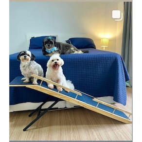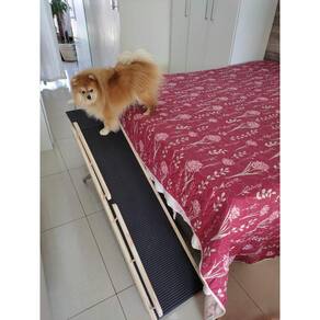 Este modelo possui patamar e grades de proteção grades para um dos lados da rampa e patamar .Adicionamos grades na lateral do patamar.O patamar é removível.As grades devem ser apertadas na montagem.Tapete emborrachado e antiderrapante muito macio.Acompanha antiderrapante para os pés da rampa, não escorrega independe do piso.Recomendada para até 15kg.Não acompanha manual de montagem. Produto de fácil montagem.Sem verniz. Pés da rampa dobráveis e produto fácil de guardar.Não pintamos a rampa e não fazemos o uso de nenhum produto químico.Madeira pinus e pé de base da rampa em metal.Regula a altura de 45 à 75cm. Marca: Rampets