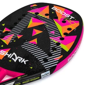 A Raquete de Beach Tennis Shark Boost Pro 2023, foi desenvolvida em Carbono 3k e preenchida com EVA Soft Grey deixando-a confortável, potente e precisa. Indicada para jogadores de nível avançado, possui uma pintura com tratamento em microgrânulos que ajudam a gerar efeitos.