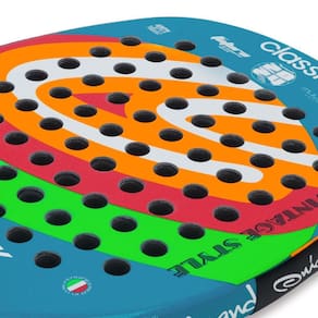 - Tecnologia: MULTI-HOLE com furos espalhados ao redor do centro da raquete, Black EVA Soft tecnologia de alta densidade para sensação intensa, controle e conforto, AIRFLOW SPEED, que são furos espalhados na lateral da raquete, que facilitam a passagem de ar, 100% Japan Carbon Frame, é um material de alta qualidade e resistência utilizado em raquetes esportivas, proporcionando durabilidade, capacidade de resposta, leveza, rigidez e potência, O Futura System é um dispositivo tecnológico para reduzir vibrações e impacto nos pulsos, cotovelos e ombros dos jogadores, proporcionando mais conforto e ajudando a prevenir lesões;
