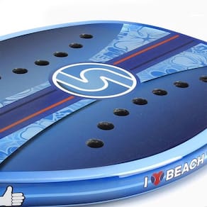 Raquete De Beach Tennis Sexy Sirf Blue tem um super núcleo macio que ajuda a guiar a bola, não importa onde ela seja atingida na raquete. O nosso novo desenho de buraco "S" com uma estrutura de buraco central invertida proporciona um ponto doce muito uniforme e largo para proporcionar aos jogadores uma maior precisão. A nova estrutura do quadro de carbono 3k proporciona uma estrutura sólida para colocar a bola de volta sobre a rede com facilidade. Vem com uma camada de granalha pré-aplicada.