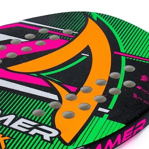 Descrição da Raquete de Beach Tennis Shark Hammer A Shark é uma das marcas referência no mundo do Beach Tennis, conta com uma ampla linha de raquetes de todos os níveis e sempre com excelente qualidade. Um exemplo disso é a Raquete de Beach Tennis Shark Hammer, ela foi desenvolvida com tecnologia EVA Soft. Conheça as Características da Raquete de Beach Tennis Shark Hammer - Perfil: Iniciante; - Coleção: 2022; - Composição: Estrutura: Fibra de Vidro. Superfície: Fibra de Vidro. EVA: Soft; - Tecnologia: EVA SOFT: É composta de material com elasticidade e leveza, proporcionando maior potência, conforto, durabilidade e permitindo uma boa absorção de vibração nas jogadas. TUBULAR TECH: Estrutura que auxilia na redução das vibrações; - Detalhamento: Possui uma pintura com tratamento microgrânulos que ajudam a gerar efeitos, contém 14 furos, balanço equilibrado, acompanha capa; - Comprimento: 50 cm; - Peso Aproximado: 320 - 330g; - Espessura: 22 mm; - Garantia do Fabricante: 90 dias contra defeito de fabricação; - Origem: Importado.