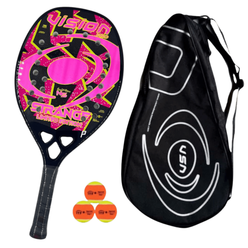 A Raquete de Beach Tennis Vision Strange 2024 faz parte de uma linha Performance exclusiva da Vision. Esse modelo continua atraindo e atenção de jogadores avançados que buscam facilidade em potência e manuseio. Com a criação do molde Focus, desenvolvido pela Vision, a Strange é Confeccionada em Carbono 3K, que aumenta a estabilidade da raquete ao impacto, ampliando também o ponto doce, deixando-a super confortável e precisa. Por ser um modelo específico para jogadores avançados, a raquete já conta com um tratamento bem condensado, e com grão médio.