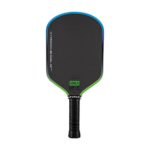 Com acabamento moderno em degradê azul e verde ao longo da borda protetora, a Hyperion 3S Dual combina alto desempenho e estilo, mantendo o visual característico da JOOLA em um formato de raquete já consagrado entre os atletas.