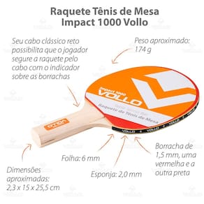 Pratique suas melhores jogadas com a Raquete de Tênis de Mesa Impact 1000 Vollo criada especialmente para atletas intermediários que buscam se aperfeiçoar nos treinos para campeonatos ou por hobbies.