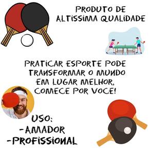 - Kit com 2 raquetes e 3 bolinhas - Raquetes feitas em madeira - Cabo estilo Sandwich de alta qualidade e ergonomia na pegada. - Emborrachadas com lados lisos conforme regra de tênis de mesa - Peso perfeito onde auxilia para uma boa pegada. - 3 bolinhas na cor Laranja 4cm Cor: madeira, preto e vermelha Peso aproximado: 177 g Dimensões aproximadas: 0,5 x 15 x 25,5 cm Kit ideal para 2 jogadores - Alegria e diversão para todas as idades a partir de 3 anos BENEFÍCIOS: - Ajuda a aprimorar a leitura e desenvolver a interpretação lógica. - Melhora o raciocínio e potencializa a concentração. - Brinquedo clássico e saudável para crianças e adultos. - Passatempo para as horas vagas. - Certificado pelo Inmetro. Cuidadosamente embalado DÚVIDAS FREQUENTES: 1 - Os produtos são novos R: Todos os produtos são novos e com . 3 - O produto acompanha R: Toda a mercadoria é acompanhada de emitida para o CPF/CNPJ informado na compra. 4 - Como são realizadas as entregas R: Sim, nos anúncios que exibirem essa opção. Imagens meramente ilustrativas Marca: Não Informado Ean: 7899849100063