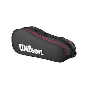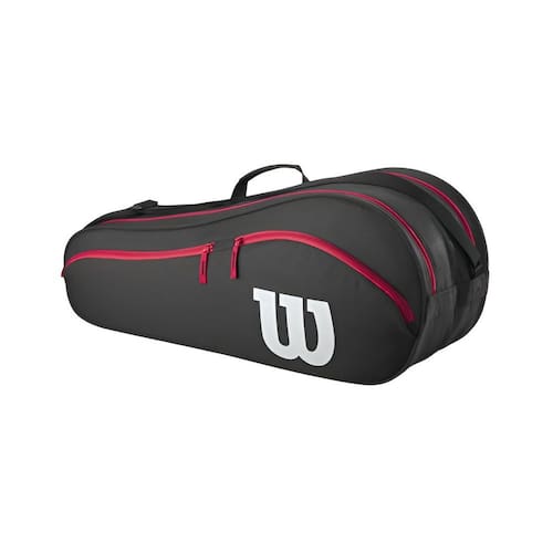 Raqueteira Advantage 6 PackRaqueteira dupla, comporta até seis raquetes sem capa, dois compartimentos com fechamento em zíper e bolso pequeno externo com fechamento em zíper, alça de mão e alça de ombro regulável com passante acolchoado, escrita e Logo Wilson em evidência na lateral.- Gênero: Unissex;- Cor: Preto;- Tamanho: 68 x 28 x 20 cm; - Capacidade: 6 raquetes;- Composição: 100% Poliéster.