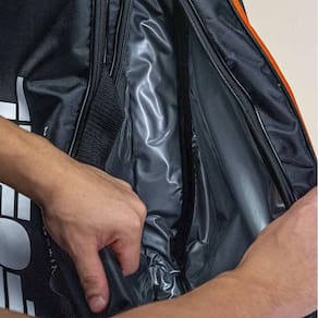 A incrível Raqueteira de Beach Tennis Classic da FOBEL foi desenvolvida em poliéster e tem uma limpeza fácil. É muito espaçosa, prática e versátil, com alças para ser transportada nas costas ou nas mãos, como você preferir. Ao total são 06 compartimentos com zíper, divididos entre: compartimento térmico, compartimentos acolchoados, compartimento para calçados, compartimento impermeável para guardar roupas molhadas e bolsos laterais com zíper para acesso rápido de seus pertences e acessórios.