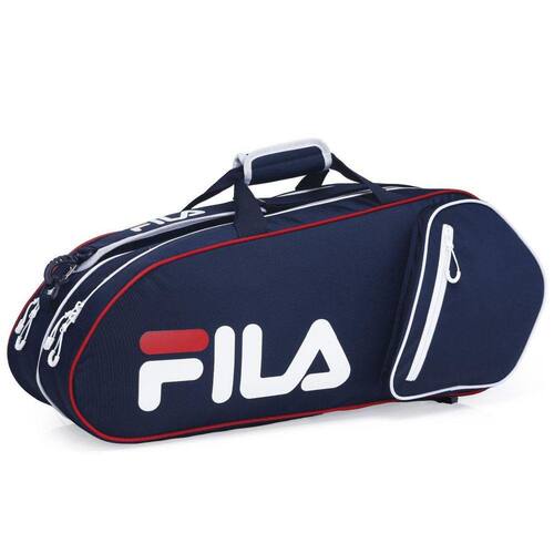 Raqueteira Fila Vicenza Marinho Descrição da Raqueteira Fila Vicenza Marinho A Fila é uma marca italiana especializada no desenvolvimento e na produção de artigos esportivos. Está presente nas principais modalidades e nos principais eventos esportivos do mundo, é patrocinadora de diversos atletas. Conheça a qualidade Fila através da prática Raqueteira Fila Vicenza Marinho, ela é ideal para transportar seu equipamento e acessórios com total conforto, organização e segurança. Conheça as características da Raqueteira Fila Vicenza Marinho - Perfil: Tennis; - Material: 100% Poliéster; - Detalhamento: Um compartimento com fechamento em zíper que comporta até 6 raquetes sem capa, um bolso externo em cada lateral com fechamento em zíper, alça regulável com passante, escrita Fila em uma lateral e na outra lateral o logo Fila; - Garantia do fabricante: Contra defeito de fabricação; - Origem: Importado. Ean: 7909527445215
