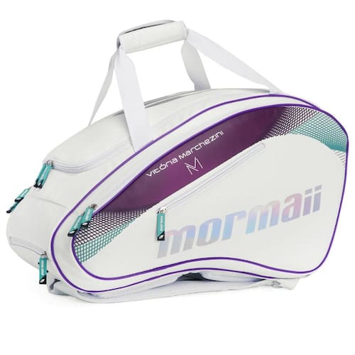 Conheça as Características da Raqueteira Mormaii Pro Vitória Marchezini Branca e Roxa- Perfil: Padel e Beach Tennis;