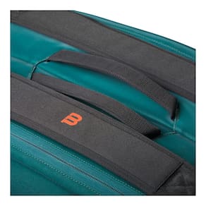 Raqueteira Wilson ESP Super Tour X9 Blade v9 é inspirada no design elegante e dinâmico da raquete Blade V9 e apresenta a mesma cor verde esmeralda. O bolso de raquetes multifuncional é o companheiro definitivo para jogadores de tênis ávidos e treinadores, comportando até 9 raquetes, equipamentos, roupas e outros itens essenciais.